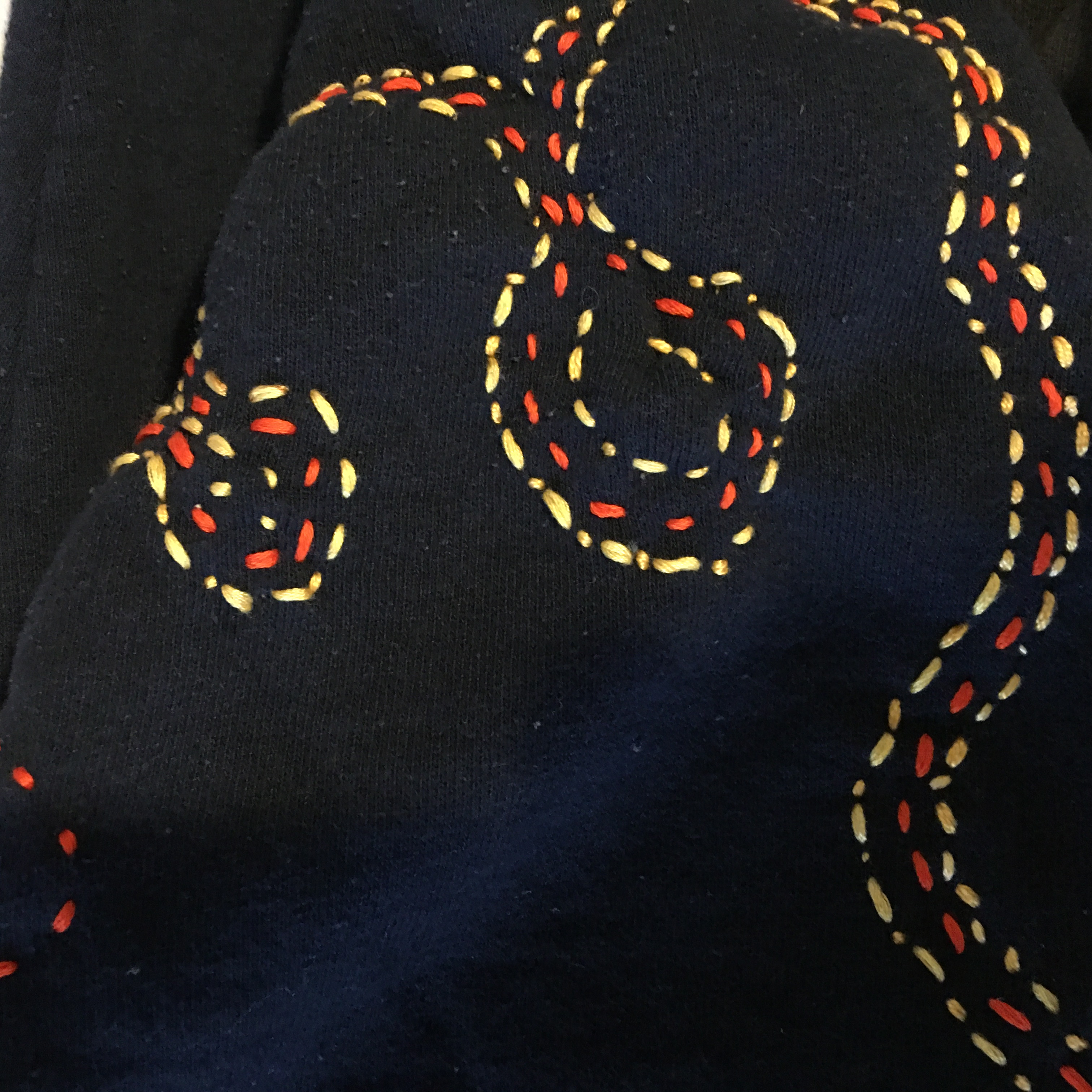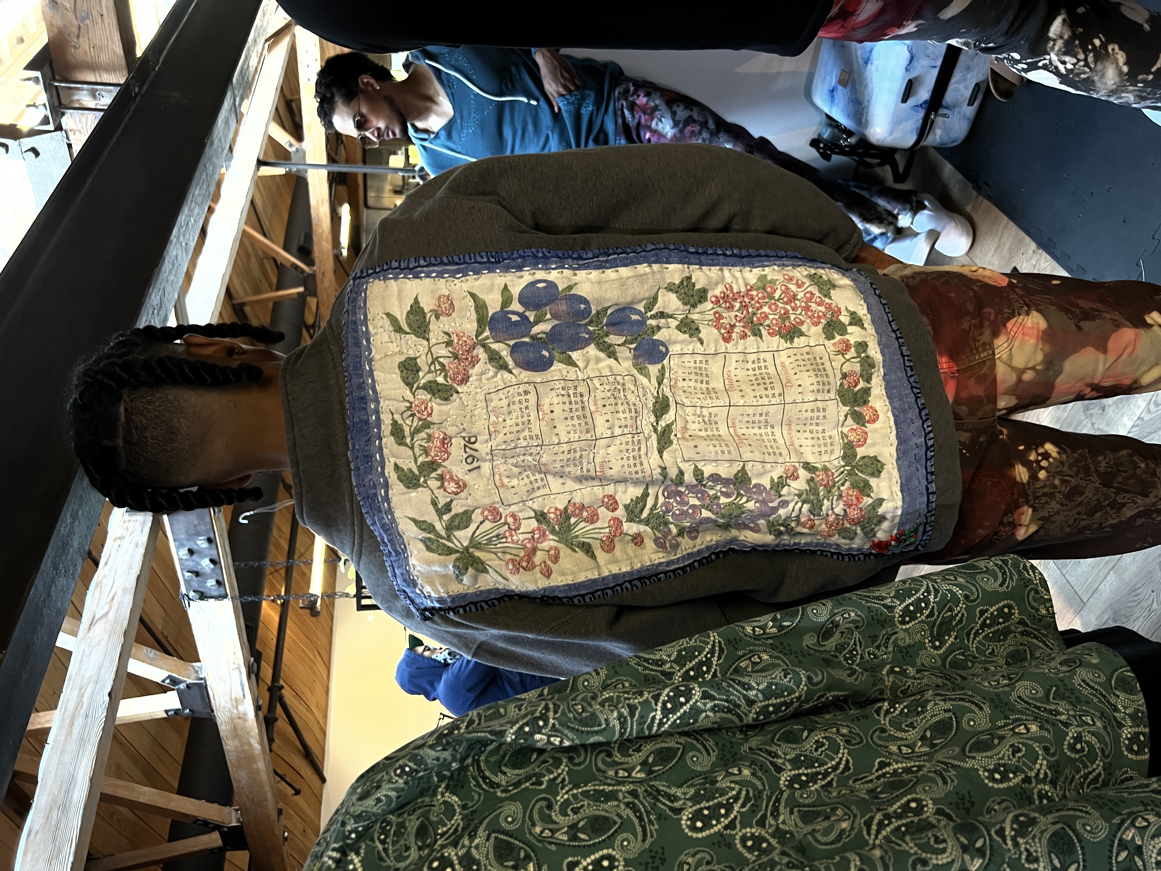 Jacket embroidered with Linen cloth. Jeans by The Raw Art Project in collaboration with the Matthew L Myers Fashion Collection.