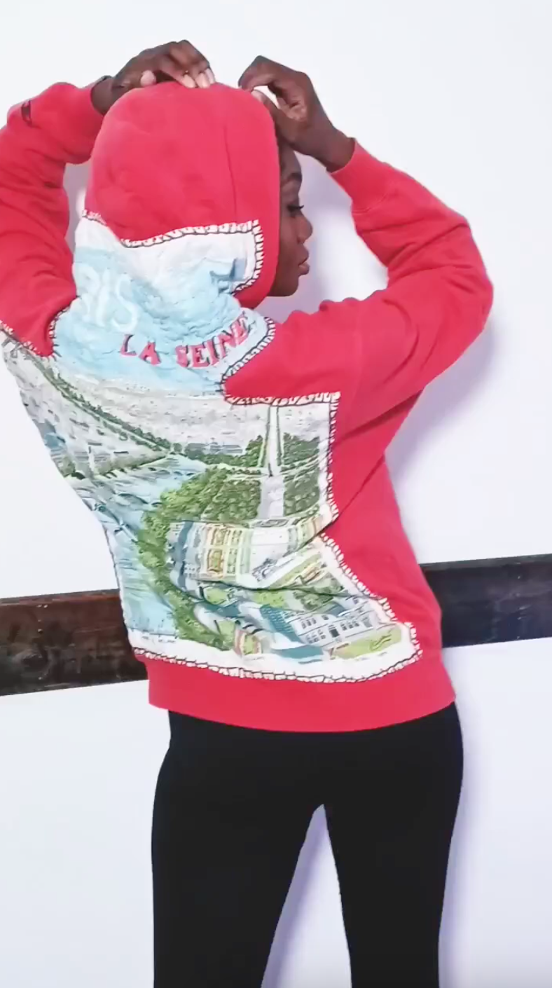 Red hoodie with Paris map. Leggings not included with acquisition.