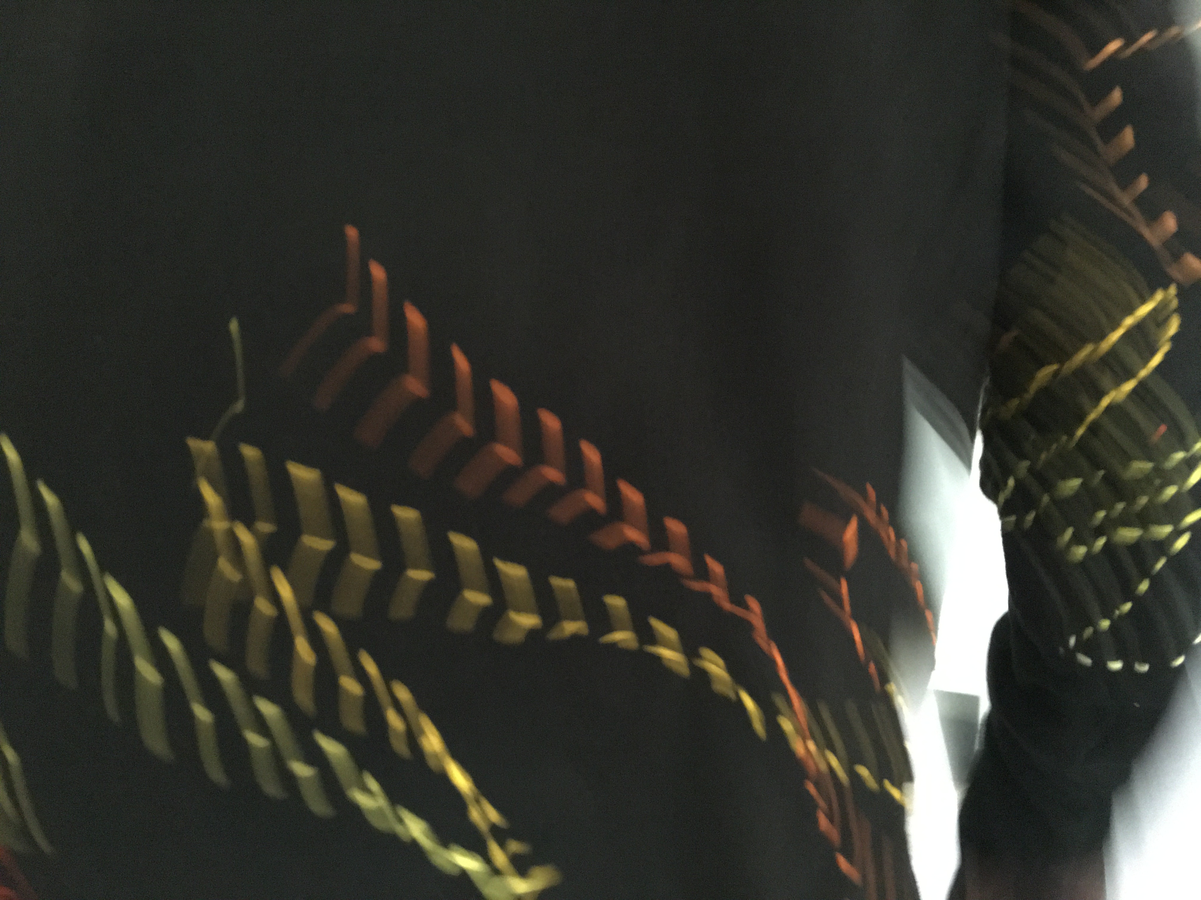 Black, white, yellow embroidery. Skirt and accessories are separate and not included.